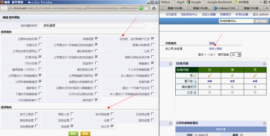 管理员增加组件和修改组件的时候,可以选择哪些角色可以看到这些组件,一般只有老板才能看到公司相关的组件,销售人员只能看到销售相关的组件。